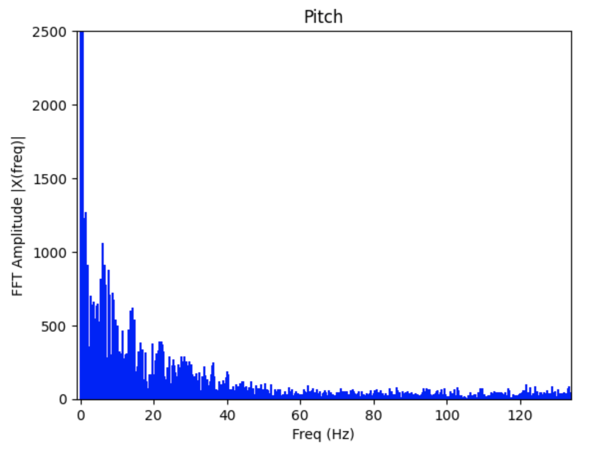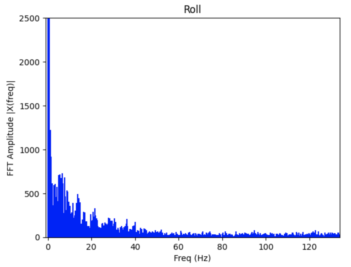 The noise in the accelerometer was examined using a Fast Fourier Transform. Data for the FFT was collected as I moved the IMU. The sinusoid and the FFT graphs can be found below. There is a large spike closer to 0Hz and less noise as the frequency increases. Note: I modified the code from Stephan Wagner's Ed Discussion post to plot the FFT graphs.