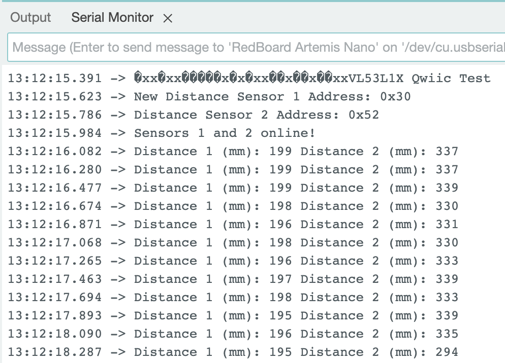 The video below shows the Serial Monitor outputs for the ToF distance readings and the update values: