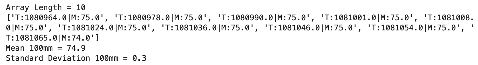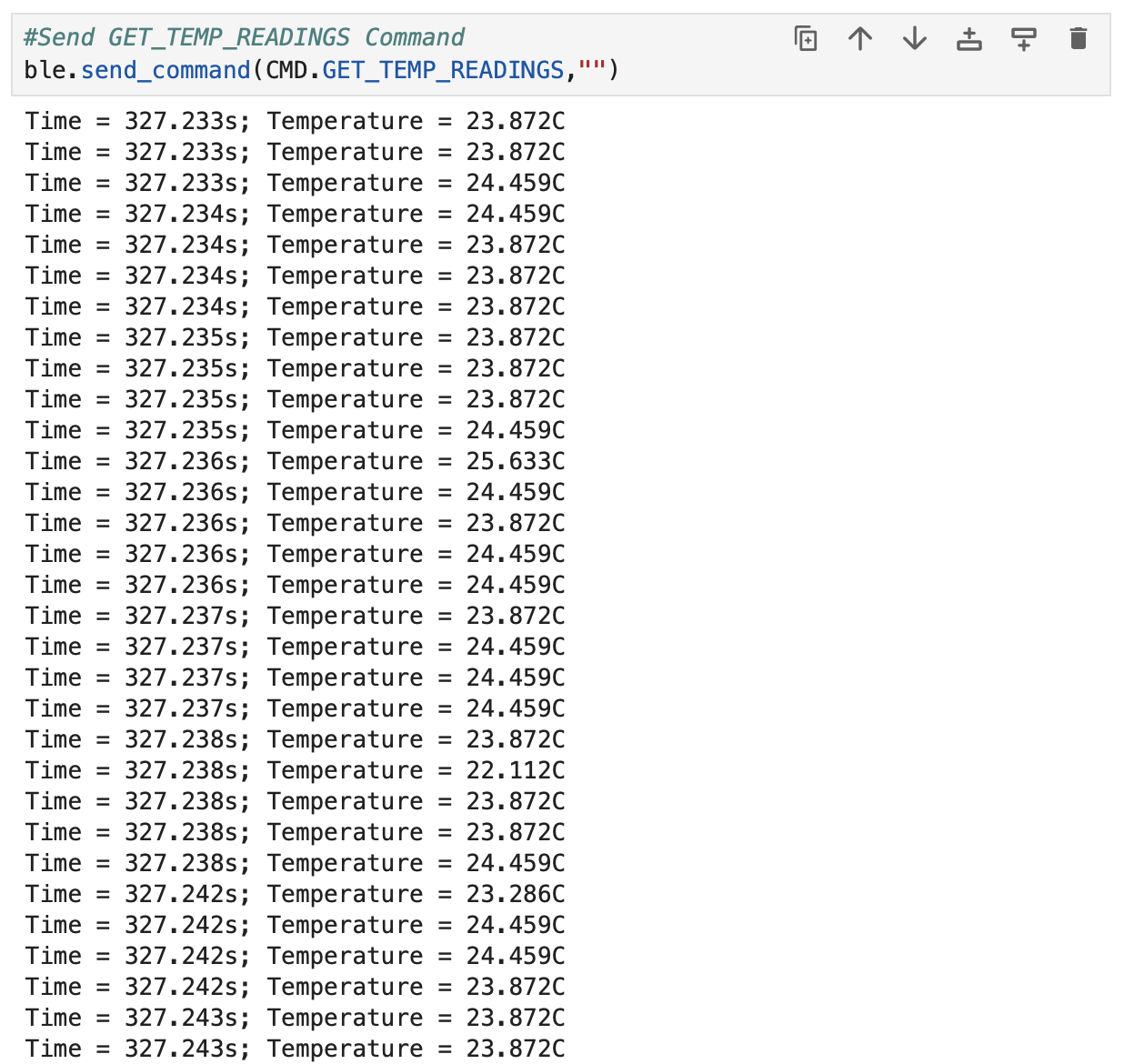 The image below shows the Jupyter Notebook command and some of the time and temperature outputs in the array.