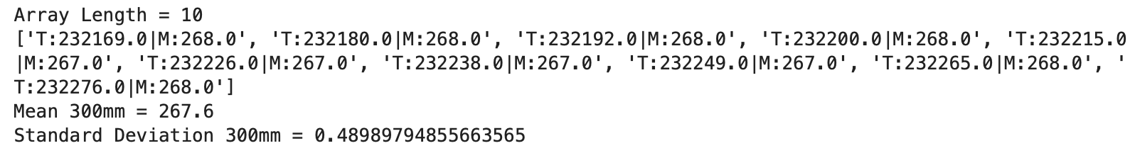 I tested the reliability of sending data at a higher rate from the robot to the computer. To determine the reliability of the data I ran the GET_TEMP_READINGS command and compared the outputs printed in the Jupyter Notebook and the Arduino IDE Serial Monitor.