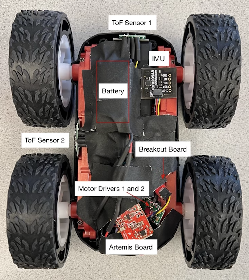 The collective objective of the labs is to collecte IMU and Time of Flight distance sensor data for localization. The below robot was assembled and used throughout the labs.