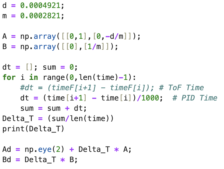 The previously used code that does not calculate the average sampling time to find Ad and Bd can be found here: Previous Ad Bd Code