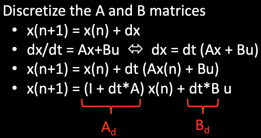 The discritized A and B matrices are calculated using the following method from Lecture 13: