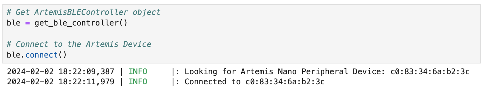 To connect to the Artemis the following lines were run in the Jupyter Notebook.