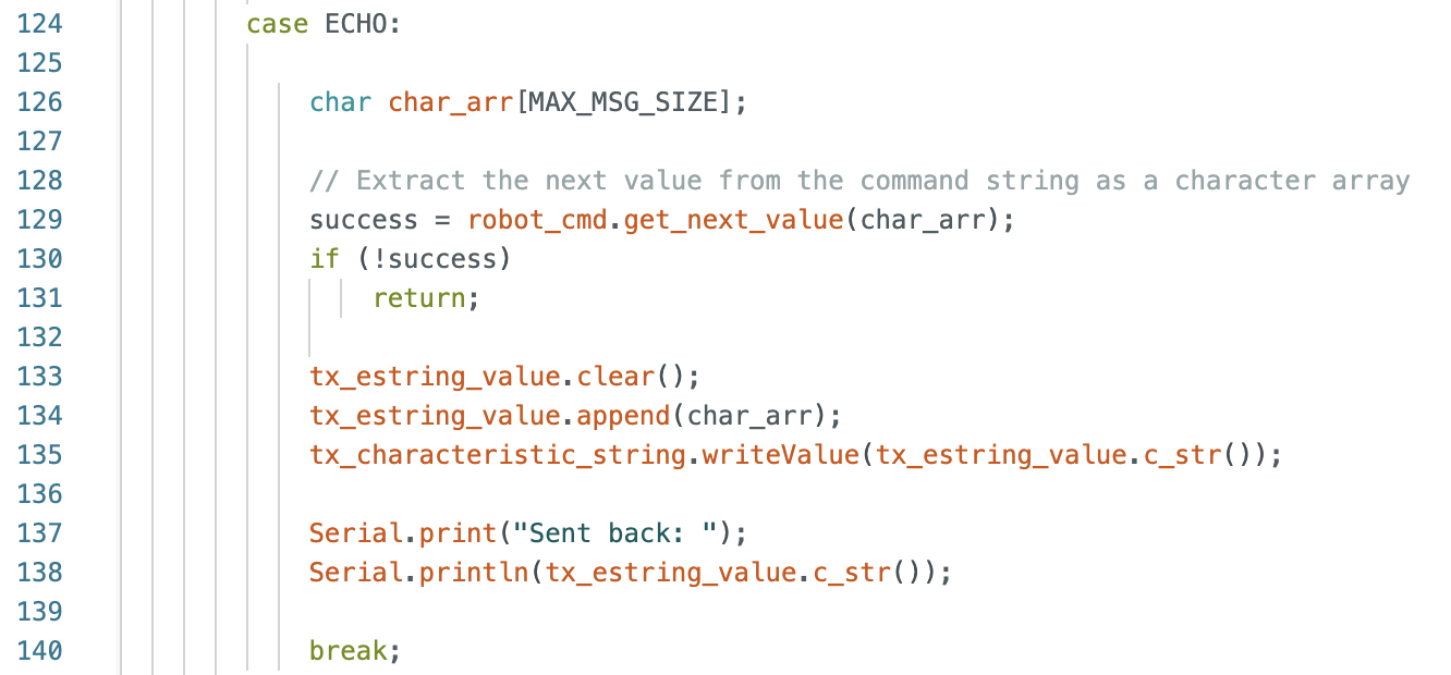 The first task was to send an ECHO command of a string value to the Artemis board and receive an augmented string on the host computer. This task tested the communication between the Artemis board and the computer.