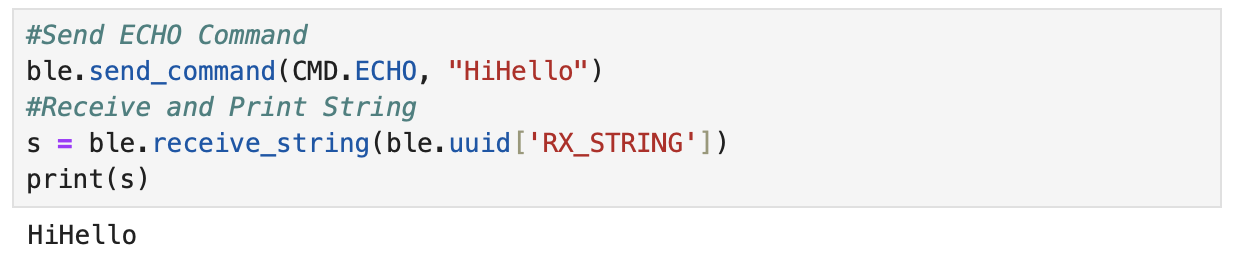 Jupyter Notebook code to send the ECHO command and receive the augmented string from the Artemis board: