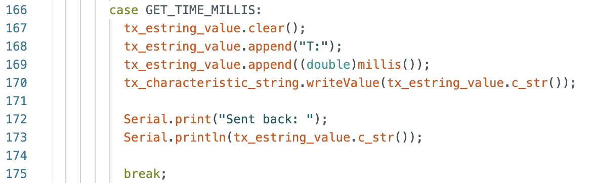 The image below shows the Arduino IDE code for case GET_TIME_MILLIS_LOOP.