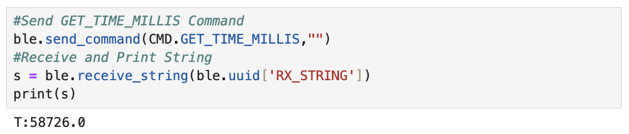 Jupyter Notebook code to send the GET_TIME_MILLIS command and receive the string with the current time: