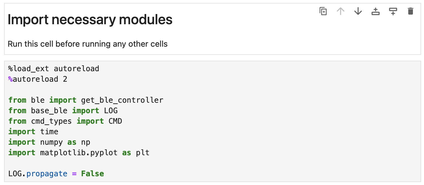 I installed the provided codebase into the project directory and copied the provided “ble_python” directory into the project directory. Then the Jupyter Notebook was opened by entering “jupyter lab” into the CLI (shown below).