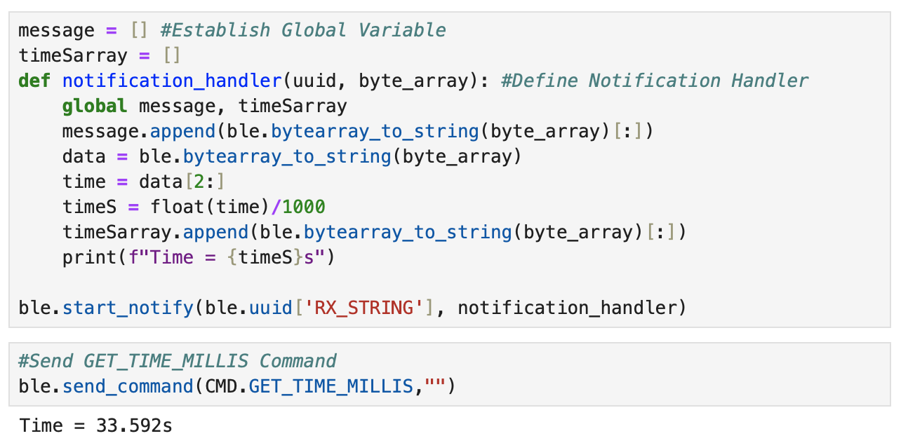The image below is the notification handler and the GET_TIME_MILLIS command in the Jupyter Notebook.